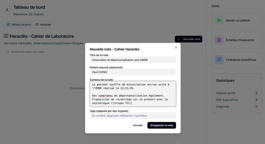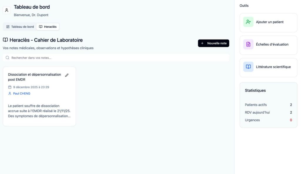 HÉRACLÈS est le cahier clinique numérique de NEUROSCOPE AI.